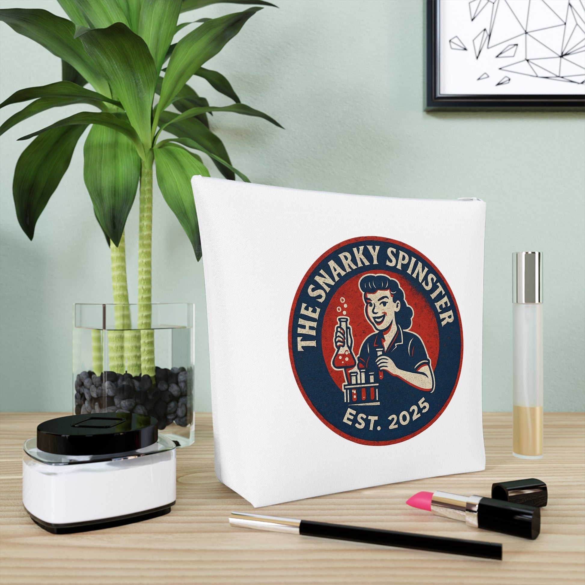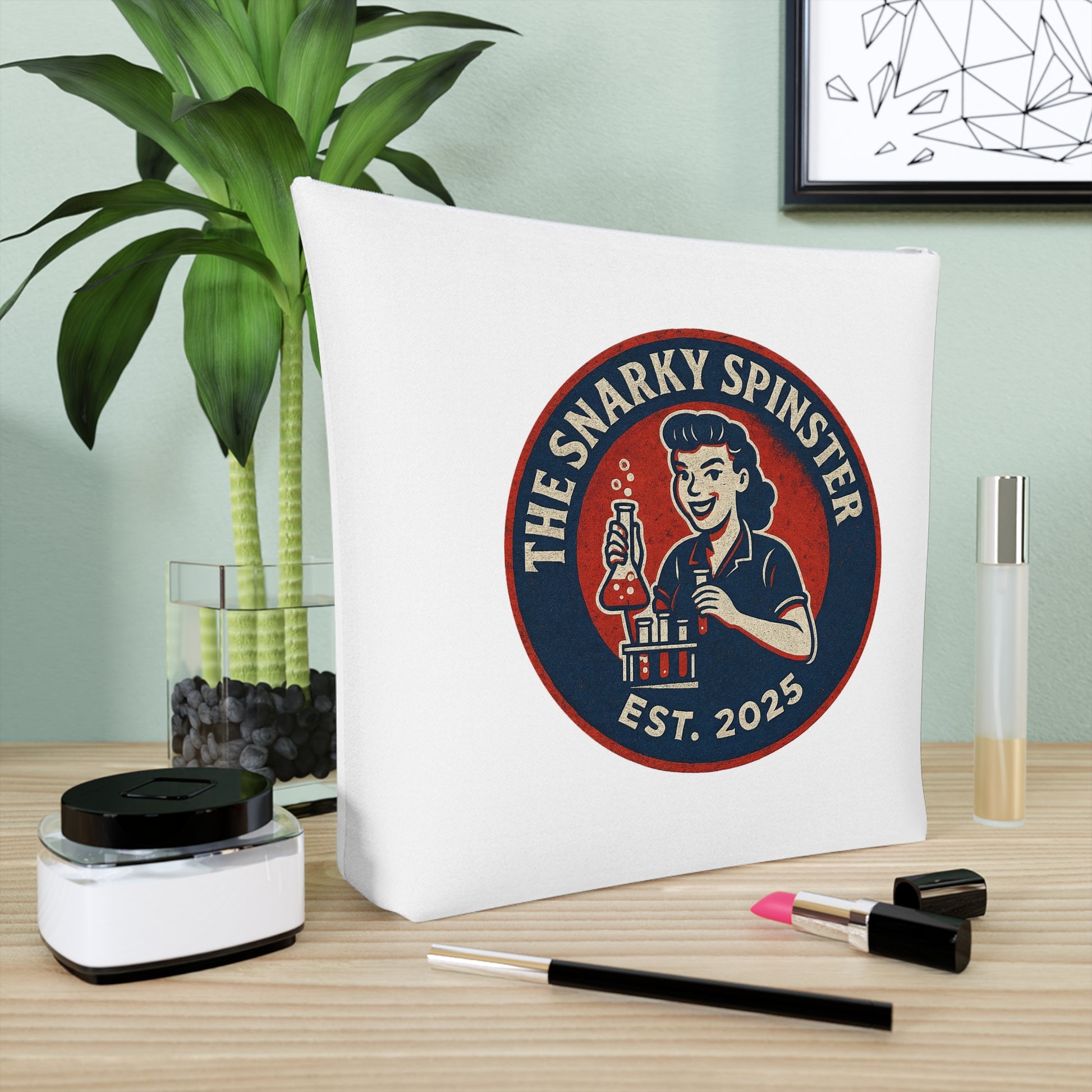 BioChem Snarky Spinster Cosmetic Bag - Fun Makeup Pouch for Artsy Women, Gift for Friends, Travel Organizer, Birthday Present, Holiday Essentials